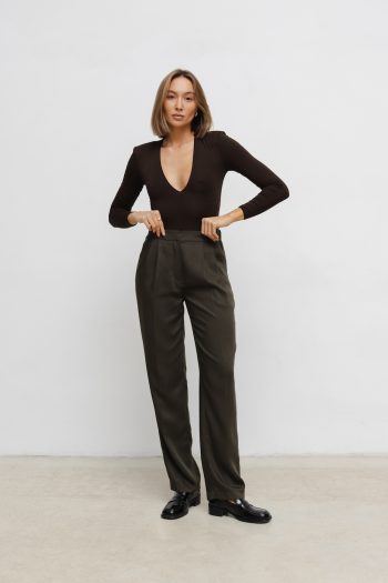 Fabric pants with tabs brown