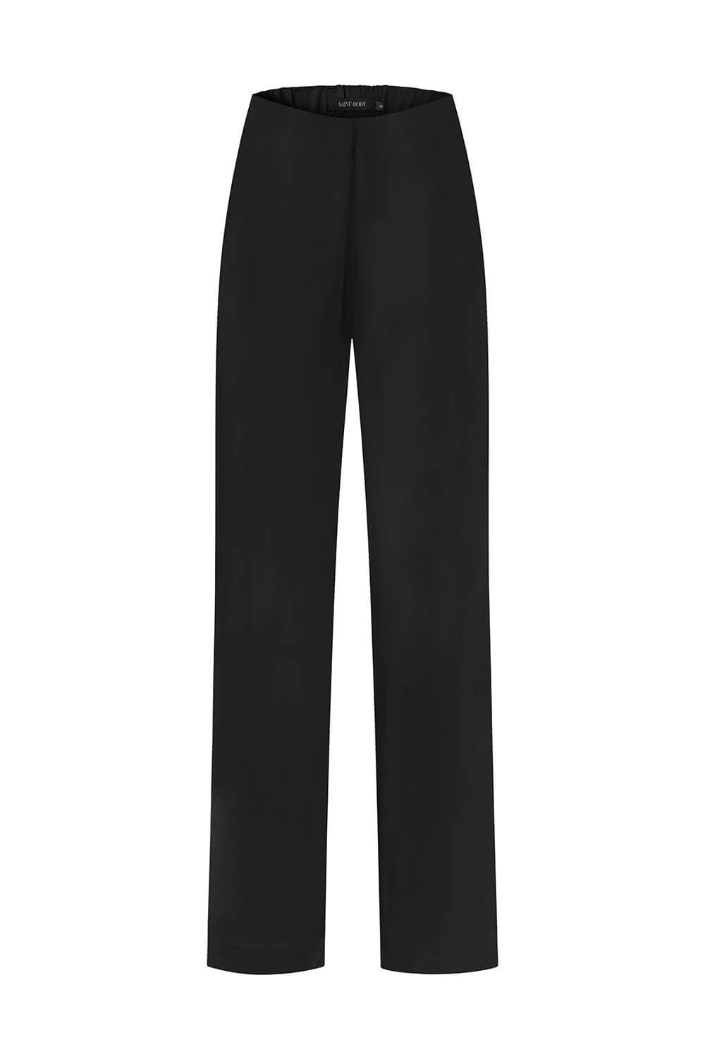 Długie, damskie, satynowe spodnie z wysokim stanem. Spodnie posiadają w pasie gumę obszytą materiałem oraz wewnętrzne lamowanie satyną. Spodnie satynowe zapinane na kryty zamek. Szeroki krój spodni, który idealnie pasuje do sportowych oraz eleganckich butów.